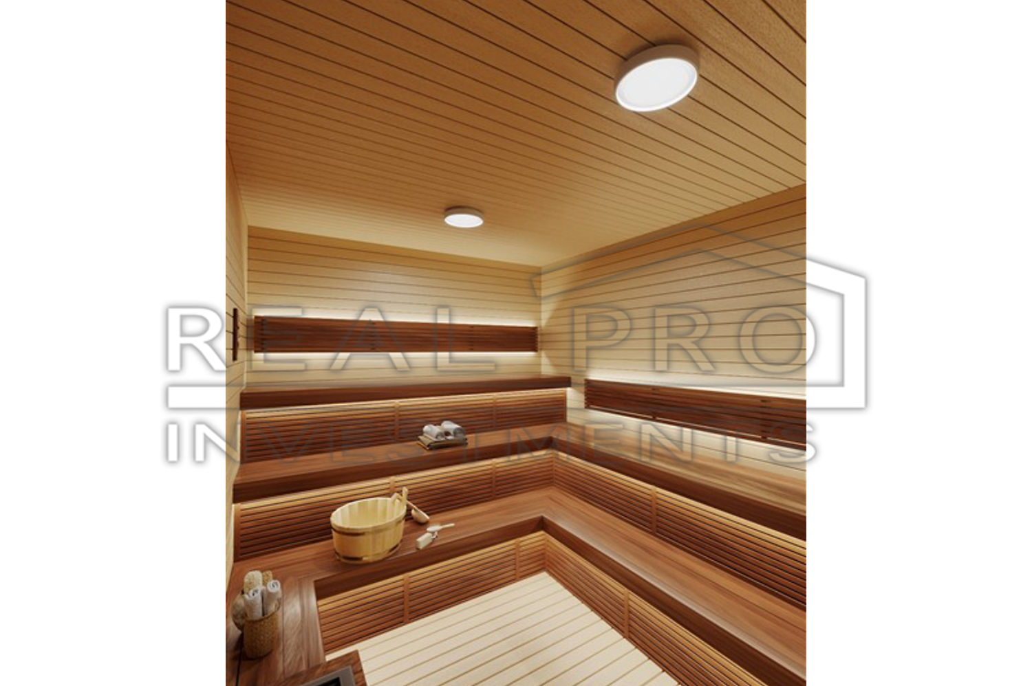 - Alle appartementen worden hoogwaardig afgewerkt met moderne materialen, ingerichte keukens en complete badkamers. De residentie heeft een uitgebreide infrastructuur: zomerzwembad, binnenzwembad, spa, fitnessruimte, kinderspeelplaats, tuin, café-bar, buitenparkeerplaats en vele andere faciliteiten die u een comfortabel verblijf garanderen. Er komen twee gebouwen van twaalf verdiepingen, omgeven door prachtige tuinen met sierplanten.