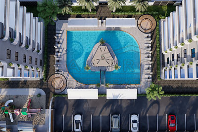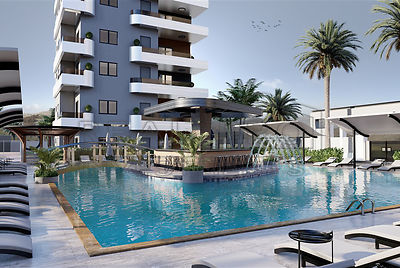 - De afstand van de residentie tot de zee is 600m en tot het centrum van de wijk slechts 300m. Op loopafstand van de residentie zijn er winkels, winkelcentra, clubs, apotheken, banken, geldautomaten, scholen en kleuterscholen, fitnesscentra, schoonheidssalons, parken en speelplaatsen voor kinderen. Het goed ontwikkelde openbaar vervoer netwerk maakt het gemakkelijk om naar alle delen van Alanya te gaan. Er is ook tweemaal per week een versmarkt in Mahmutlar.