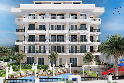 - Nieuwe kleinschalige residentie op 500 meter van het strand en de wandelboulevard in Kestel Alanya, bestaande uit slechts één gebouw van vijf verdiepingen met appartementen met één, twee of drie slaapkamers en een oppervlakte variërend van 50 tot 120 m²