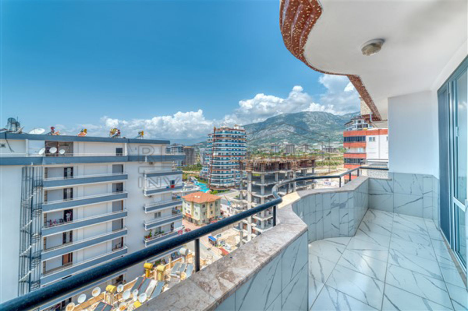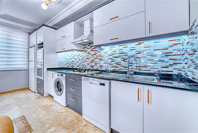 - Vanuit de gecombineerde keuken is er een uitgang naar het balkon, met een zithoek en uitzicht op de Middellandse Zee, de bergen en Mahmutlar, de slaapkamers zijn voorzien van comfortabele bedden, kledingkasten, nachtkastjes, airco's, gordijnen en speciale verduisterende gordijnen, een van de slaapkamers heeft toegang tot een eigen balkon, dat ingericht kan worden als extra zithoek, de badkamers zijn voorzien van het nodige meubilair, douchecabines, ingebouwde verlichting, de wanden en vloeren zijn afgewerkt met keramische tegels
