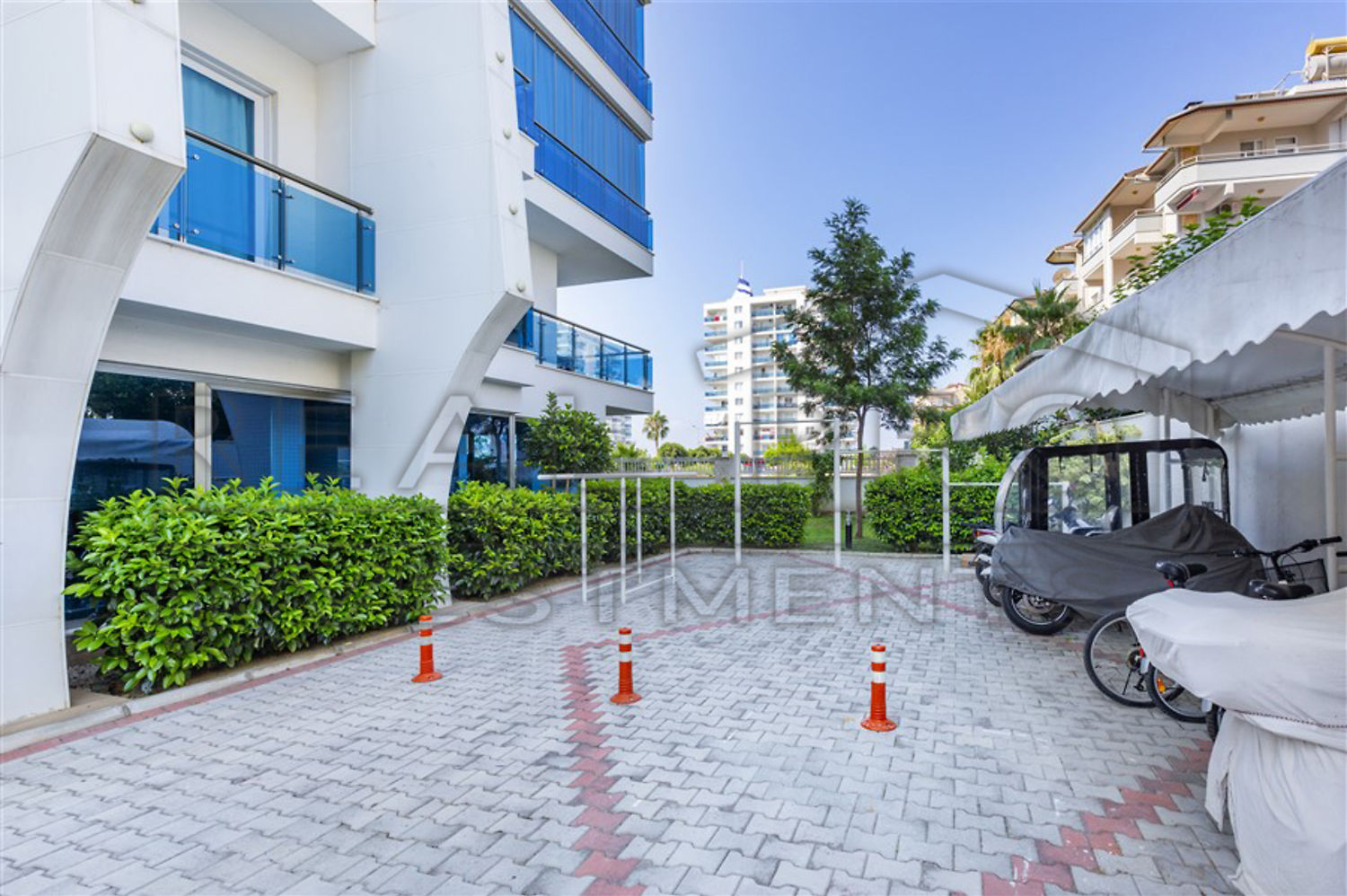 • De residentie is zeer goed gelegen op amper 250 meter van de zee en 350 meter van het centrum van Mahmutlar, zodat u alles voor een comfortabel leven op wandelafstand bij de hand heeft