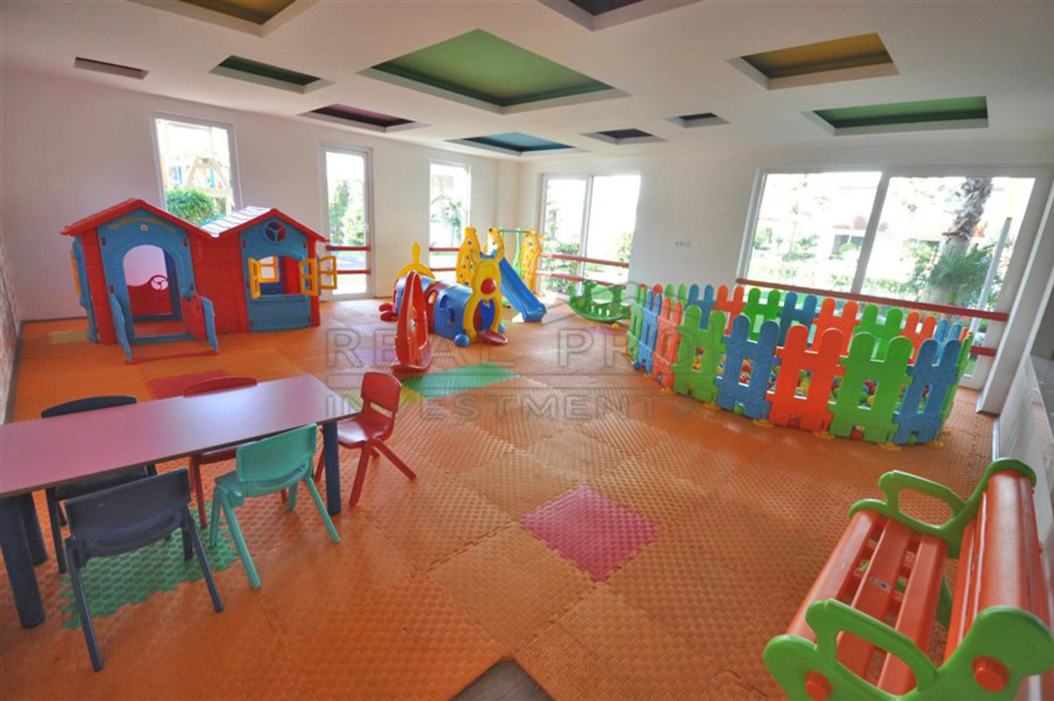 - Het wooncomplex waarin het appartement zich bevindt beslaat een grote oppervlakte met een goed onderhouden groene tuin, zwembaden voor volwassenen en kinderen - met een bar aan het zwembad - en parkeergelegenheid, op de begane grond van de residentie bevindt zich een een binnenzwembad, een fitnessruimte, een sauna en een ontspanningsruimte met biljart en tafeltennis, er is een speelkamer voor de kinderen voor op een zeldzame regenachtige dag, het hele complex is uitgerust met bewakingscamera's en de 24/7 security zorgt ervoor dat er geen ongewenste personen de residente betreden
