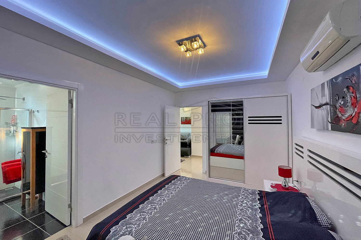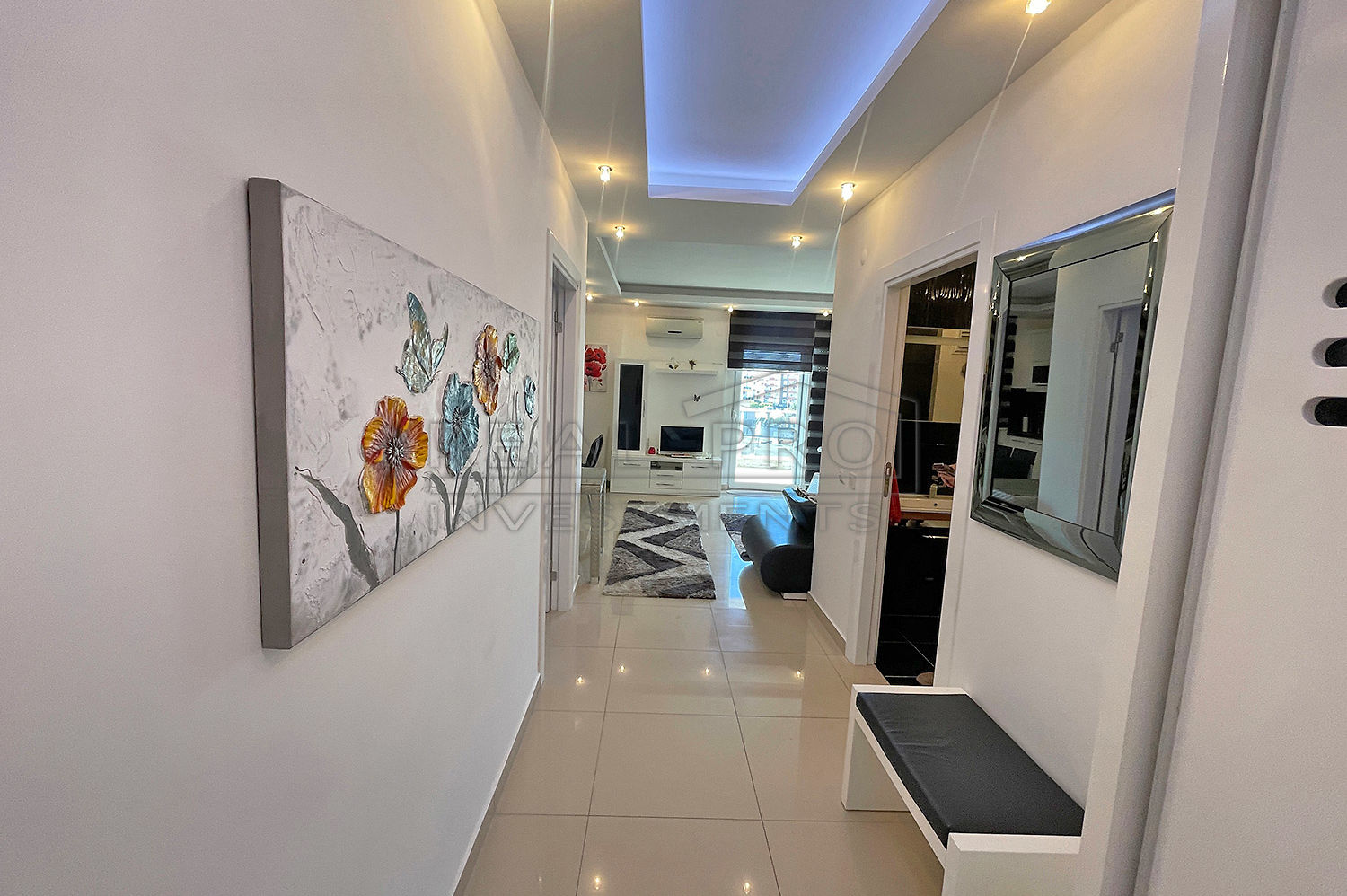 - Het moderne design van het appartement is in dezelfde stijl ontworpen en zorgt ervoor dat alle vertrekken mooi op elkaar aansluiten, het interieur wordt gedomineerd door wit, waardoor een gevoel van lichtheid en ruimtelijkheid ontstaat, terwijl de kleurrijke schilderijen, de zachte verlichting, het comfortabel meubilair en de smaakvol geselecteerde decoratieve items het appartement glans en individualiteit geven