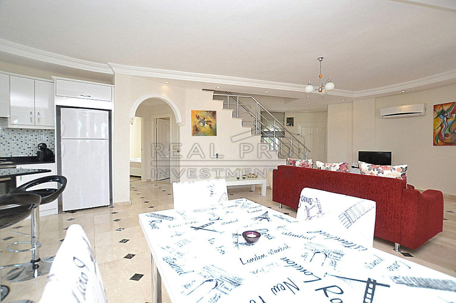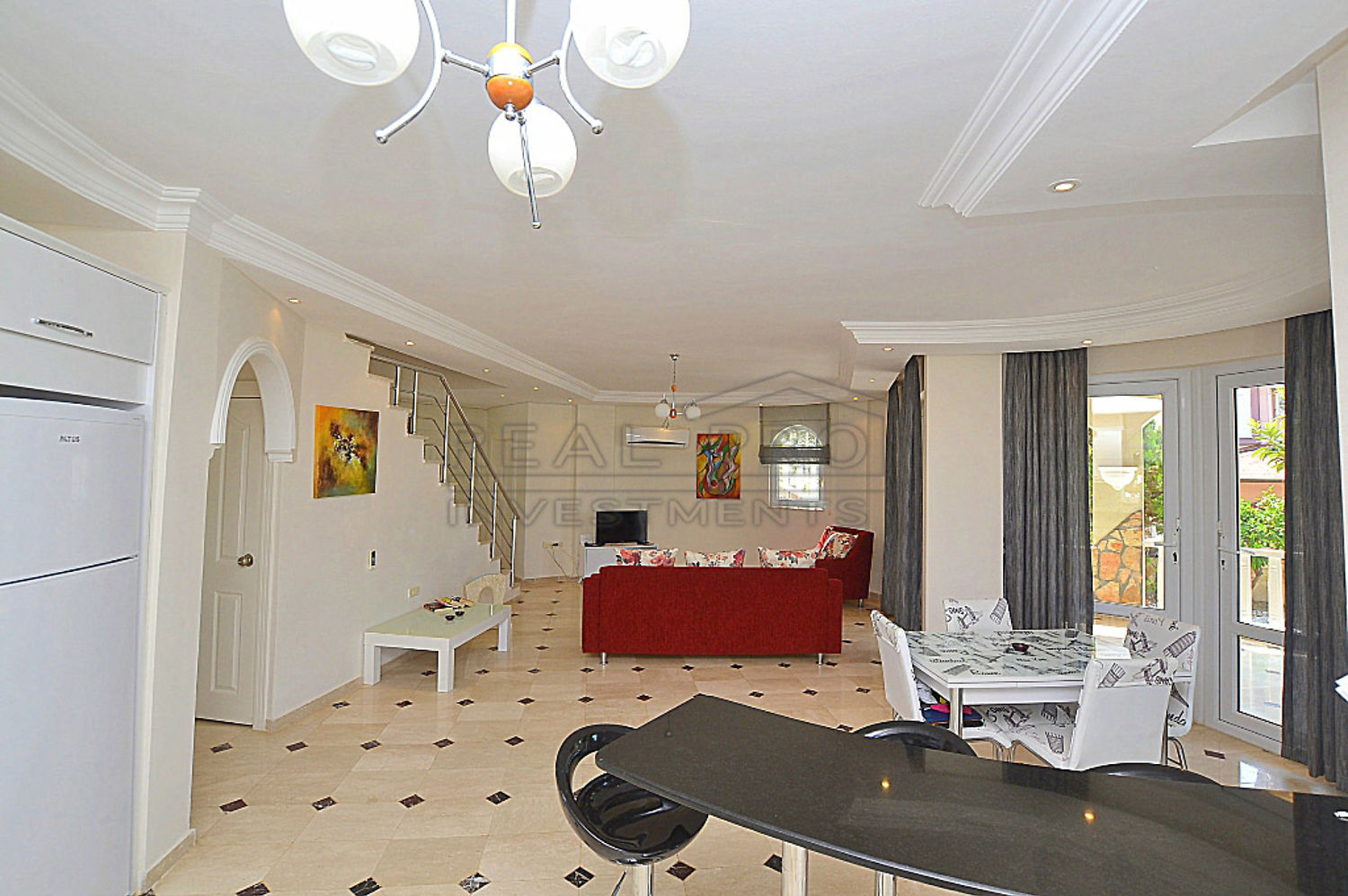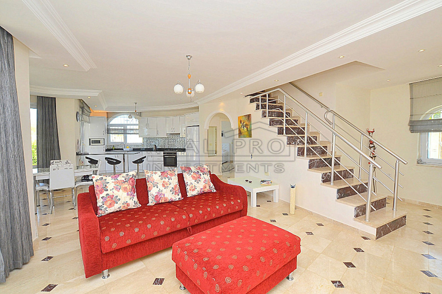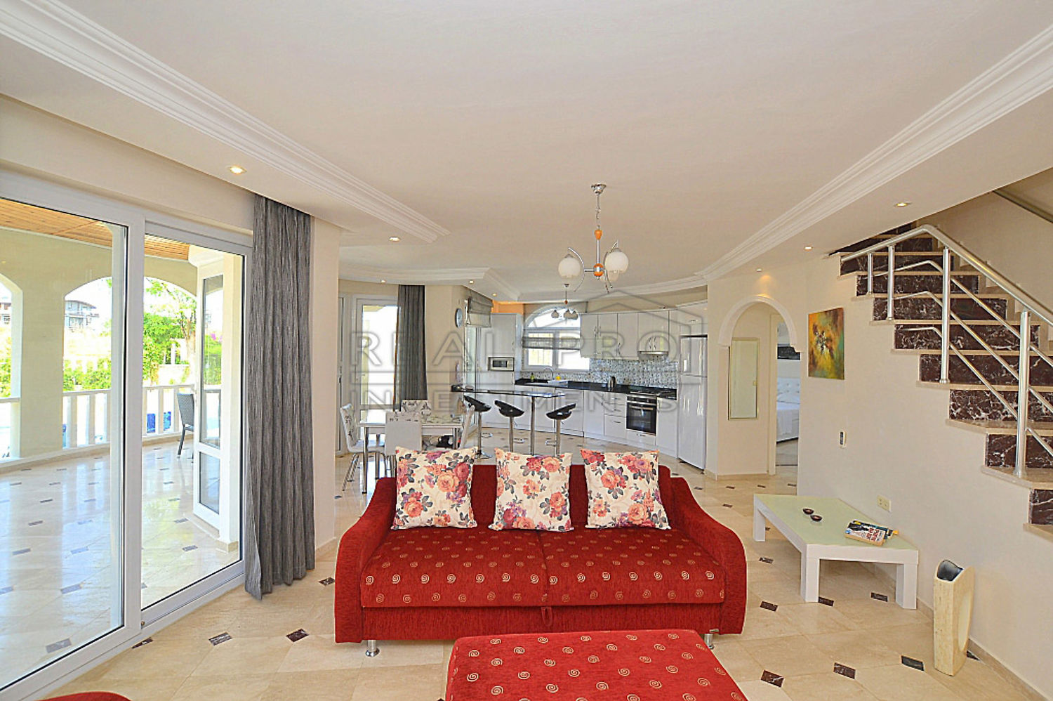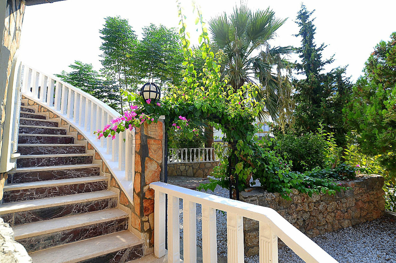 - Een comfortabele granieten trap verbindt de verdiepingen, de villa beschikt over twee balkons op de tweede verdieping en een terras met gezellige eethoek die dat rechtstreeks toegankelijk is vanuit de woonkamer en keuken, bij de afwerking is gebruik gemaakt van moderne en hoogwaardige bouwmaterialen, op een oppervlakte van 800 m² bevindt zich naast de villa zelf een privé zwembad met een groot zonneterras, een tuin met volwassen sierplanten en er bovendien parkeerplaats voor drie wagens