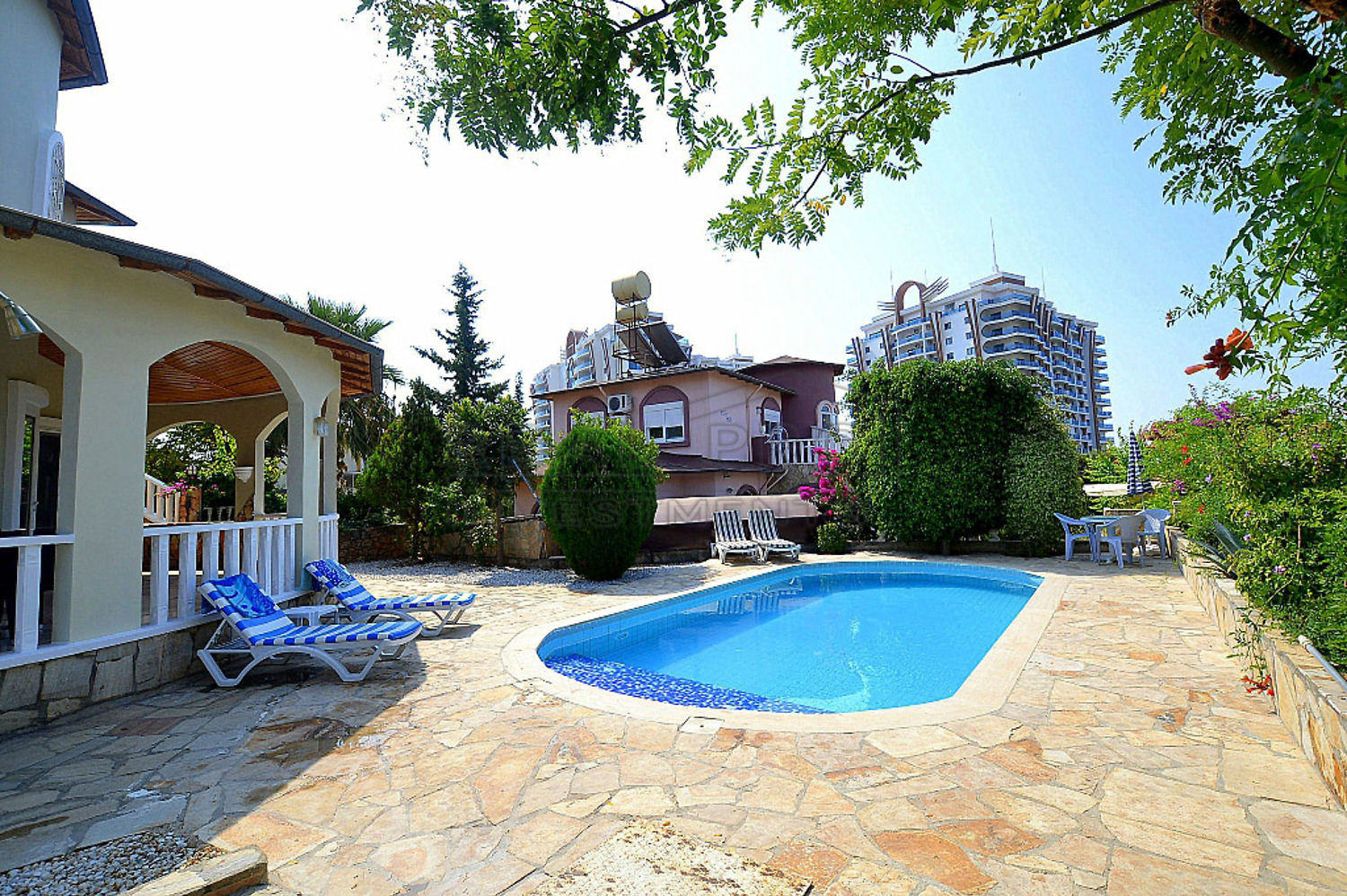 - Ruime villa met vijf slaapkamers, gebouwd op een mooie perceel van 800 m², met een privé tuin en privé zwembad, gelegen in Mahmutlar - een bekend district van Alanya - op ongeveer 1400 meter van de zee en 1000 meter van Mahmutlar centrum