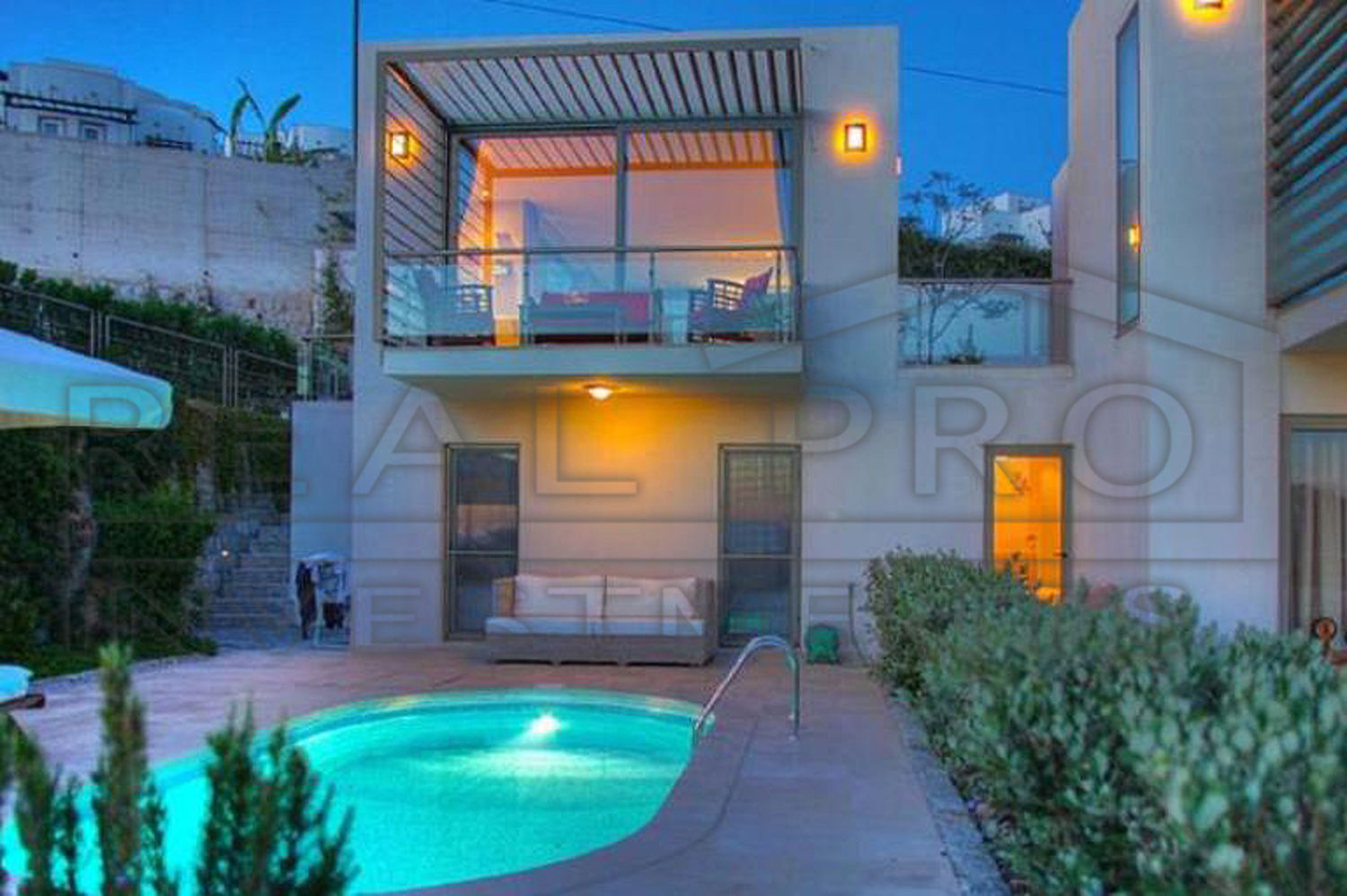 Halverwege tussen Yalıkavak en Gümüşlük ligt deze prachtige bekroonde residentie met 34 villa's. Iedere villa heeft een privé zwembad en de struiken en bloemperken zorgen tezamen met de uitgekiende architectuur voor een natuurlijke scheiding met de aanpalende villa. De slaapkamers bevinden zich op het gelijkvloers, wat betekend dat u zo vanuit de slaapkamer uw tuin kan inwandelen om een verfrissende duik te nemen in uw zwembad. Op de bovenverdieping bevindt zich de ruime woonkamer en de moderne open keuken met ontbijtbar. De grote schuiframen met toegang tot het terras zorgen voor veel lichtinval én een prachtig uitzicht over de Egeïsche Zee. Aan de achterzijde ligt het tweede terras dat dankzij zijn schaduwrijke ligging bijzonder geschikt is als buitenkeuken tijdens de lange warme zomers.