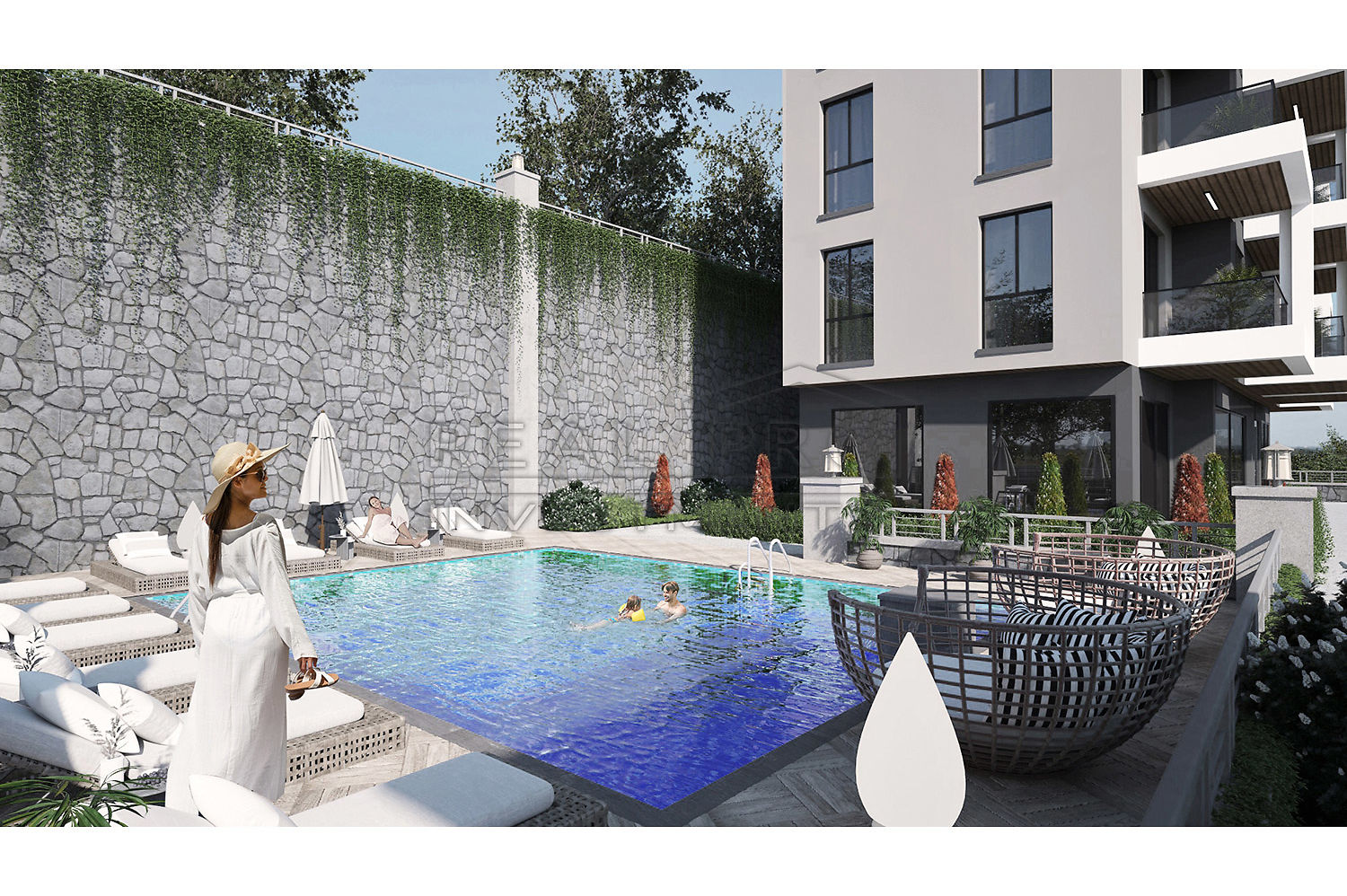 • In a quiet, tranquil area of Alanya Konaklı, construction has begun on a boutique residence with only sixteen flats in a picturesque setting on a plot of 830 m²